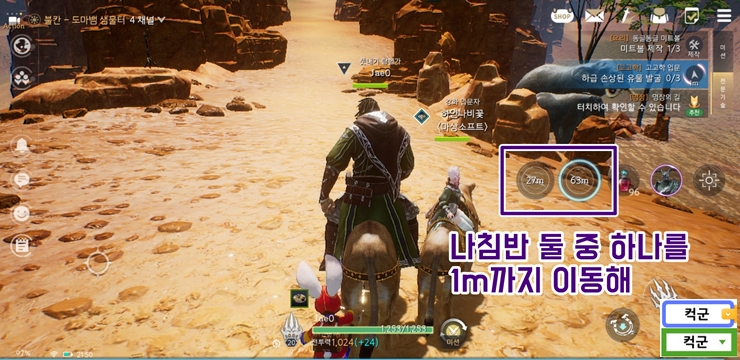 트라하 고고학 유물찾기 고고학 미션 장소에 도착하면 화면 우측 중앙에 레이더 혹은 나침반 처럼 생긴 2개의 원이 나옵니다. 중간에는 거리가 표시되는데요. 트라하를 이리저리 움직이면 그 거리가 줄어들거나 늘어납니다.