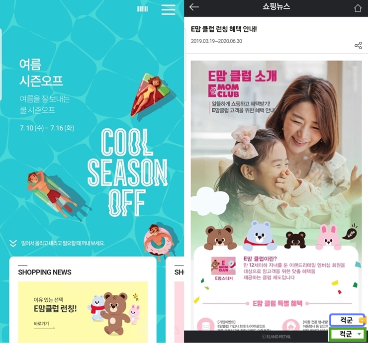 E맘클럽에 가입과 각종 프로모션에 대한 자세한 내용은 이랜드리테일 앱(위에 다운로드 링크 남겨드렸습니다.)에 아래에 "E캄클럽 런칭" 배너에 잘 나와있습니다.